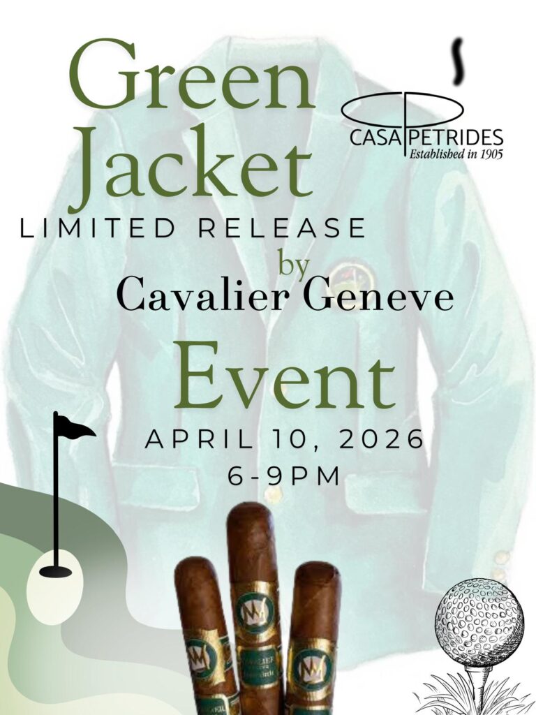 Cigar enthusiasts and golf fans, mark your calendars! Casa Petrides is proud to host an exclusive in-store event celebrating the Green Jacket 2026 Limited Release by Cavalier Genève.
